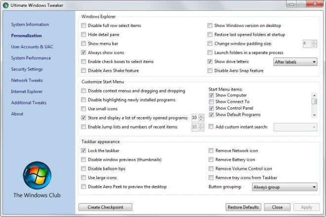 Sugerencia : Lo primero que puede hacer es hacer clic en el enlace crear punto de control para crear una copia de seguridad de su configuración actual. Usted puede restaurar los datos en un momento posterior, entonces si algo sale mal.