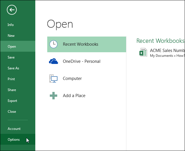 En la pantalla del backstage, haga clic en “Opciones” en la lista de elementos de la izquierda.