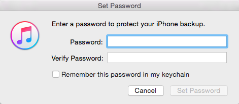 - Luego se le pedirá que cree una contraseña específicamente para esa copia de seguridad.