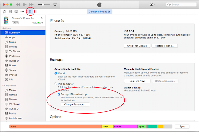 Si bien las copias de seguridad de iCloud siempre están cifradas, las copias de seguridad de iTunes no lo están, por lo que si prefiere hacer una copia de seguridad de su dispositivo en su computadora, deberá activar la opción de cifrado en iTunes.