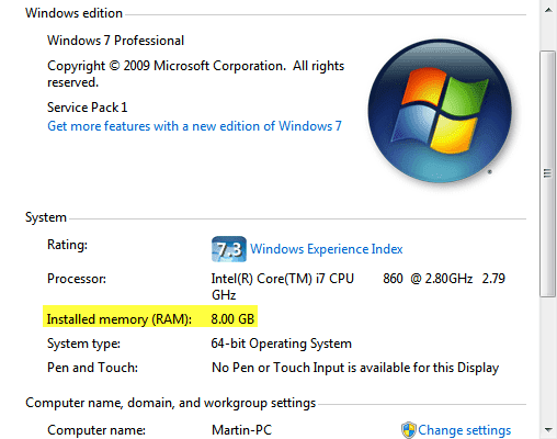 Lo primero que debe hacer es comprobar la memoria instalada actualmente. Los usuarios experimentados pueden saber la respuesta a cuánto ram tiene instalado su ordenador, mientras que los usuarios sin experiencia pueden utilizar software para averiguarlo. La forma más fácil bajo Windows es presionar Windows-Pause y buscar el listado de la memoria instalada (RAM) en la ventana que se abre.