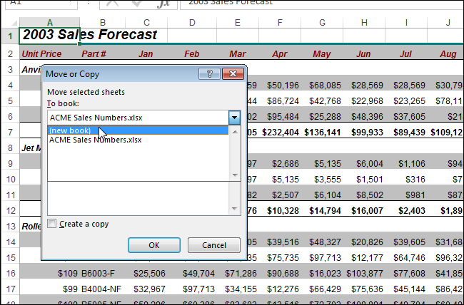 Haga clic en “Aceptar”. Se crea un nuevo libro de trabajo y se copia la hoja de trabajo en él. Si decide mover la hoja de trabajo, ya no estará en el libro de trabajo original.