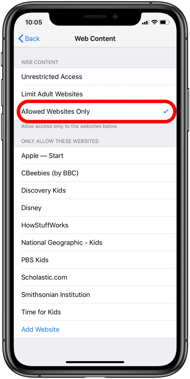 ¡Ahora puede limitar y permitir el acceso al sitio web según sea necesario en los dispositivos iOS y iPadOS de su hijo!