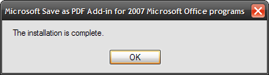 Continuando con mi aparente tema PDF esta semana, pensé que sería bueno señalar un buen Add-In para Microsoft Office 2007 que le permite guardar o enviar por correo electrónico documentos en formato PDF. Sólo tiene que descargar e instalar el complemento de Microsoft Save As PDF. La instalación es muy sencilla, sólo tarda un minuto y está listo para usar una característica que Microsoft ignoró durante mucho tiempo. En realidad hay 2 complementos diferentes, uno sólo permite PDF y el otro permite tanto el formato PDF como el XPS.
