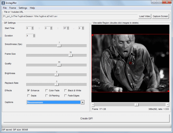 Usted puede ir a través de cada fotograma que el gif animado será hecho usando los controles deslizantes en la parte inferior. Una vez que haya encontrado el clip adecuado, puede empezar a manipular un par de parámetros: