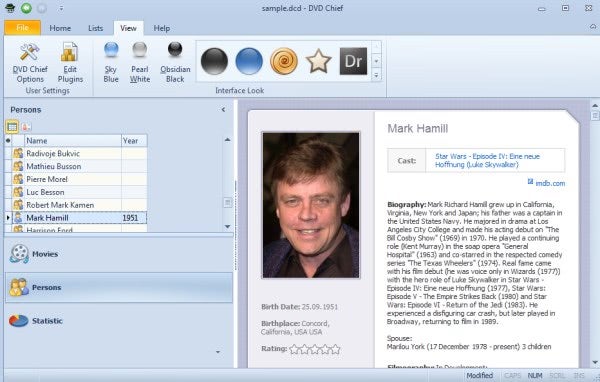 Aún mejor, el reparto, el equipo y otra información como los géneros están vinculados en el programa, y conducen a páginas detalladas en el software. Es necesario buscar la información de los actores por separado para recuperar la información de la IMDB también. Si no lo haces, terminas sin información sobre el actor en el programa, excepto el nombre y alguna información básica.