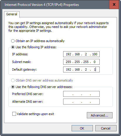 - Seleccione Utilice la siguiente dirección IP .