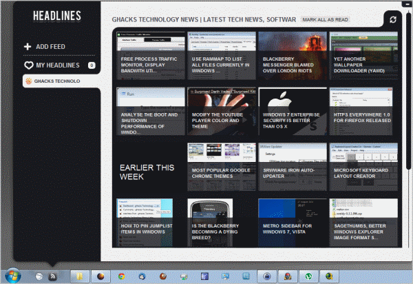 Las aplicaciones individuales se inician con un solo clic en su icono. La interfaz se abre con fluidez. La aplicación de titulares, por ejemplo, muestra una selección de fuentes RSS predeterminadas y personalizadas en su interfaz. Se proporcionan opciones para añadir enlaces RSS personalizados a la aplicación que se muestran en el lado izquierdo. Las opciones están disponibles para mostrar las noticias de todos los canales RSS en orden cronológico o las noticias de un canal RSS específico.